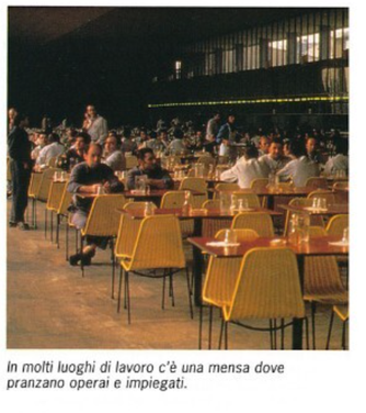 La settimana lavorativa media è di quaranta ore. La giornata di lavoro inizia fra le 8 e le 9 la mattina e termina fra le 17 e le 19 la sera. A metà giornata si fa una pausa per il pranzo.I lavoratori hanno diritto a cinque o sei settimane di ferie pagate all'anno. In Italia non esistono turni per le ferie. Agosto è il mese in cui fabbriche, uffici e negozi chiudono, e tutti vanno in ferie per due o tre settimane. Soprattutto durante la seconda e la