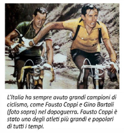 Il ciclismo non è seguito soltanto stando seduti in poltrona, ma è anche praticato attivamente, soprattutto nell’Italia settentrionale e centrale. La sera, al ritorno dal lavoro, molti inforcano la bicicletta e pedalano per qualche chilometro. C’è chi preferisce invece fare jogging, prima o dopo il lavoro. Anche se gli uomini sono ancora la maggioranza, le donne si dedicano sempre di più a queste attività sportive. Oggi si ha molta cura del proprio corpo e per mantenersi in forma si va in palestra a praticare il body building: è una ginnastica che si fa con l’uso di attrezzi, regolati sulla forza individuale.