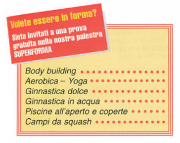 Guarda questa pubblicità di una palestra. Quale attività consigli per una persona: